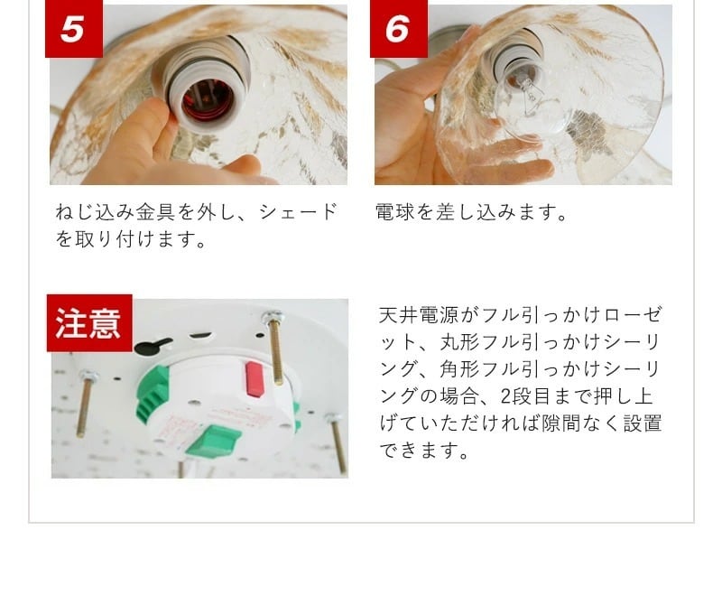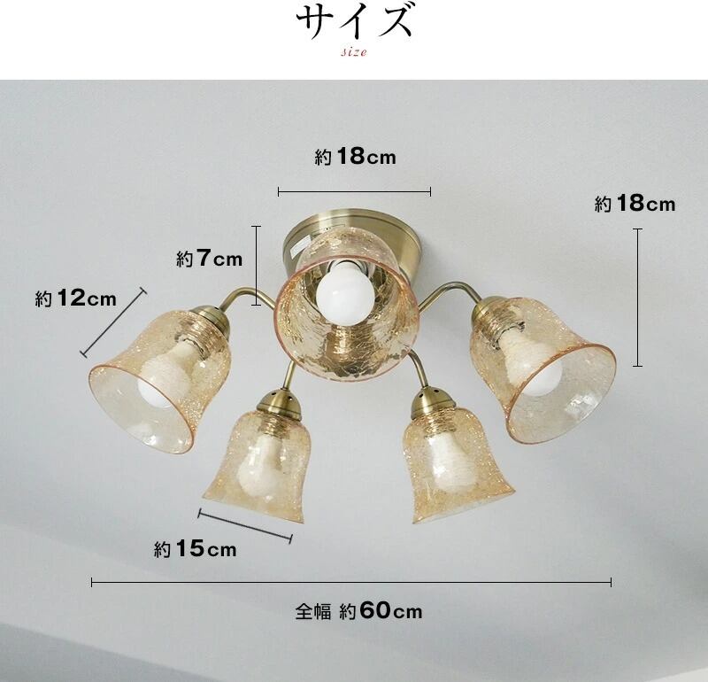 (12畳の場合:100W相当×5、10畳までの場合60W相当×5の電球使用がおすすめです)